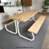 วัสดุ: ฟอเมก้าขาว (หน้าโต๊ะ) และเหล็กตัวดัดตัวเจ (ขา)